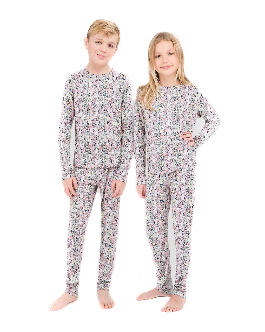 This mid-weight, heat-trapping comfort Free Ride fabric from Terramar is easy to layer for your active kids, no matter what chilly outdoor activity theyโre participating in. The set comes with a crew neck top and pants.